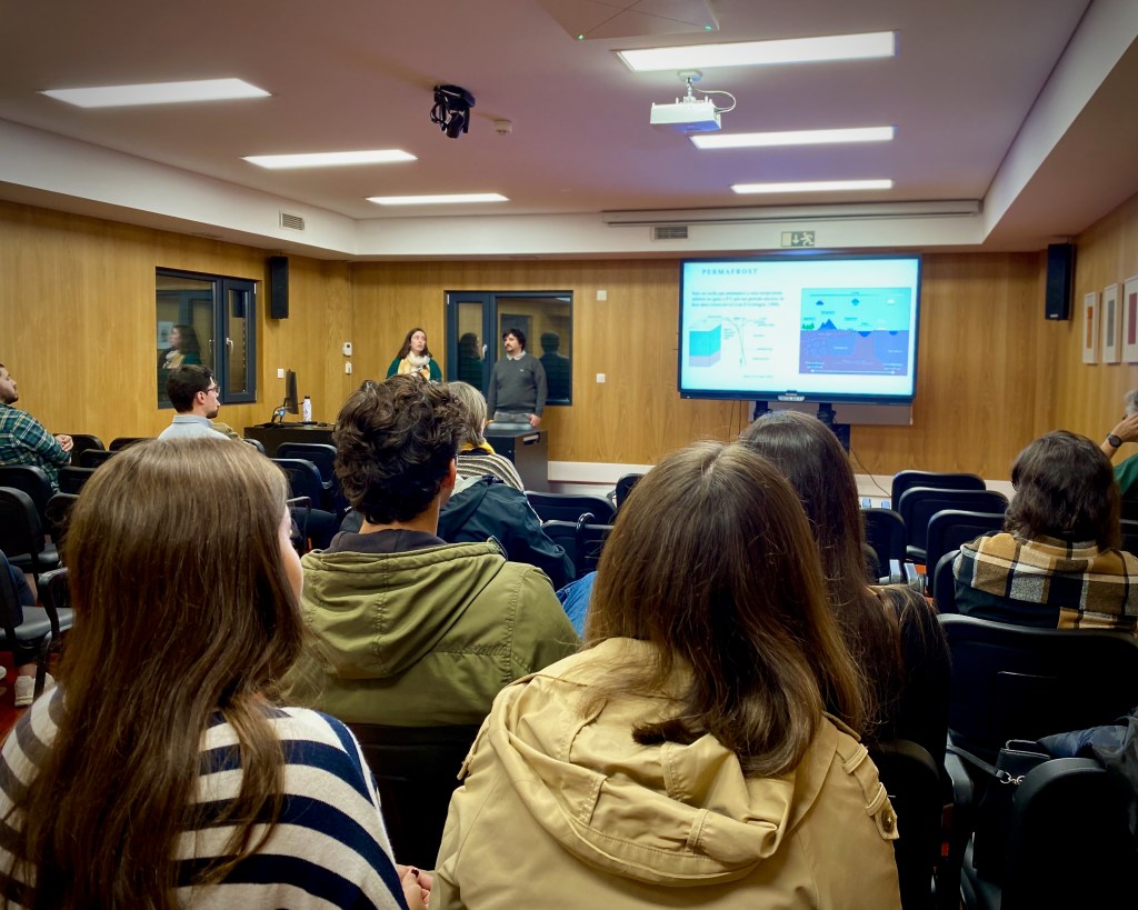 Tuesday, we enjoyed an engaging session on Antarctica! Joana Baptista and Vasco Miranda, #ULisboa PhD students, shared their research🔬 on #permafrost and #vegetation in the Antarctic Peninsula🏔️🌿, recounting their past experiences and adventures from their Antarctic campaigns🇦🇶📚